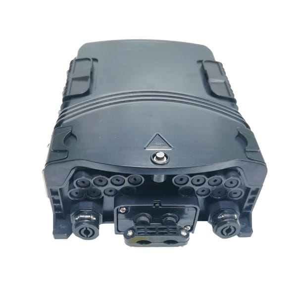 Inside, there are fiber splicing trays where fiber optic cables are spliced and managed. These trays have slots and holders to neatly arrange fiber optic cables and splices, preventing tangling and ensuring optimal signal transmission.