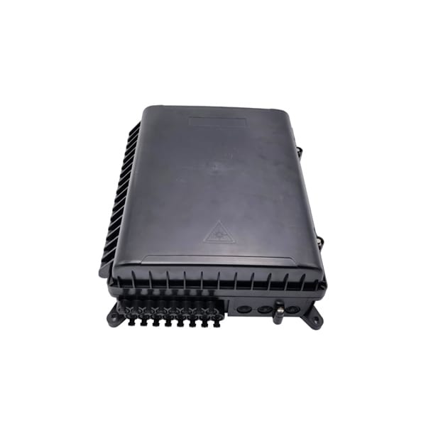This box has a compact and robust structure. There are multiple fiber entry and exit ports at the bottom, which can be used to connect different optical fibers. The box is equipped with fixing brackets for easy installation in outdoor spaces such as poles or walls.