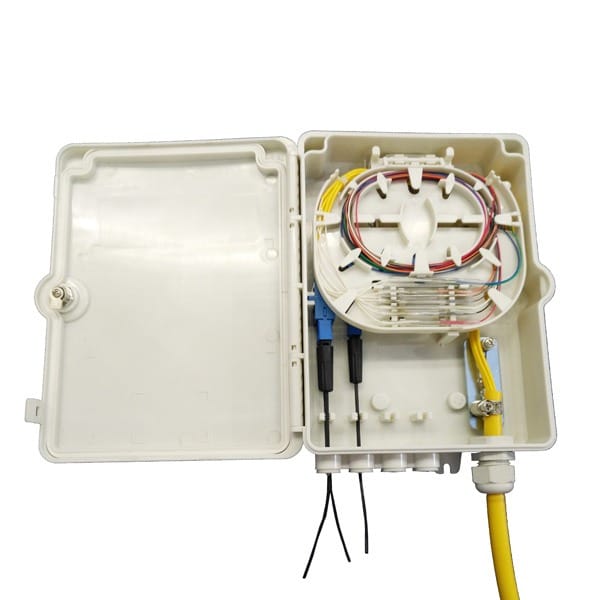 The FTB108H fiber optic distribution box is suitable for both indoor and outdoor use with a complete waterproof ring inside, waterproof and dustproof protection. With two locking clips and a snap-lock, this box can meet IP65 waterproof rating.
