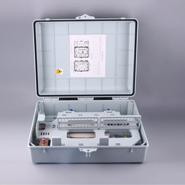 At the bottom layer under the rotate plate, there are large space to install 2 pcs splice trays for single fiber splicing, surplus fiber winding and feeder cable enter and winding ,there will be cable fixtures and fiber management kits preassembled in the box.
